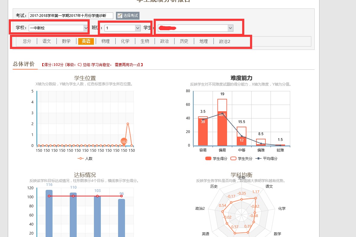 6、選擇學校、班級、學生,然后點擊下方的對應科目即可查看對應的成績。