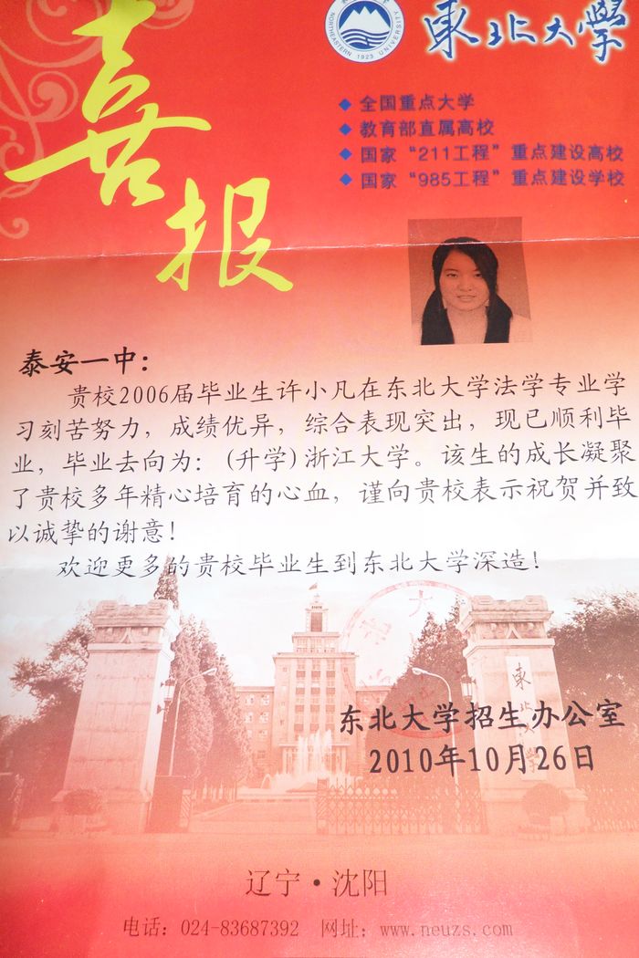 東北大學(xué)致我校喜報(bào)