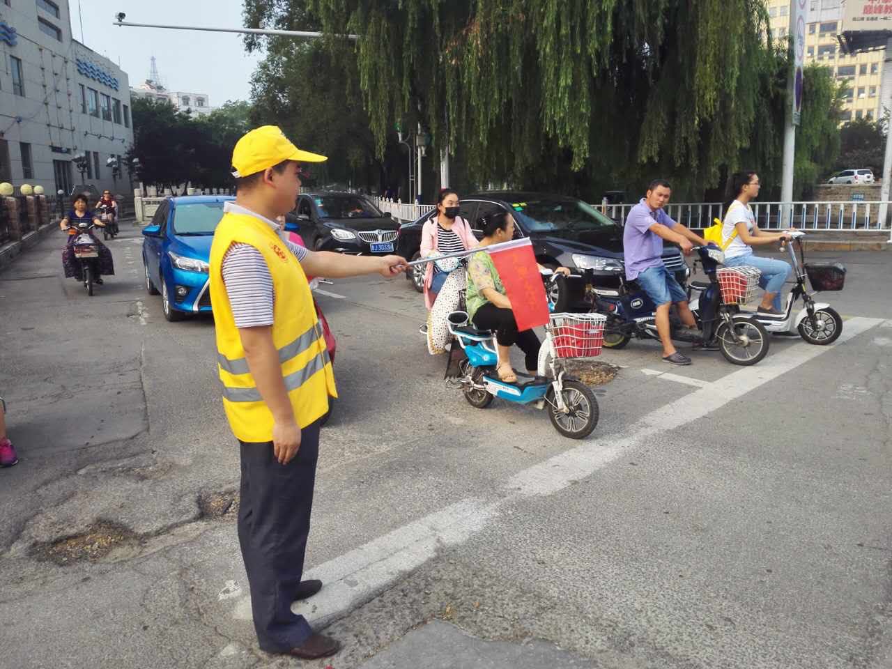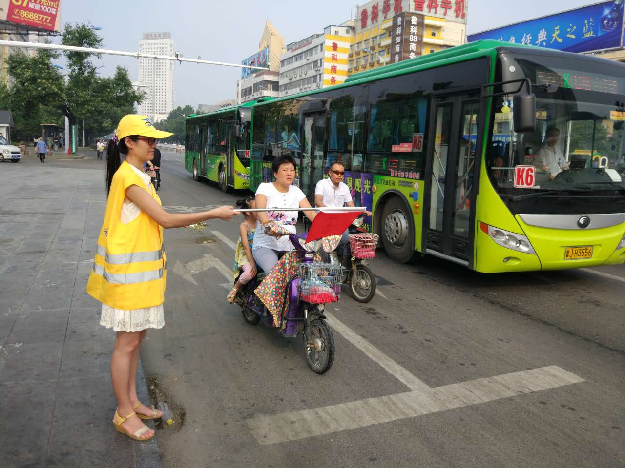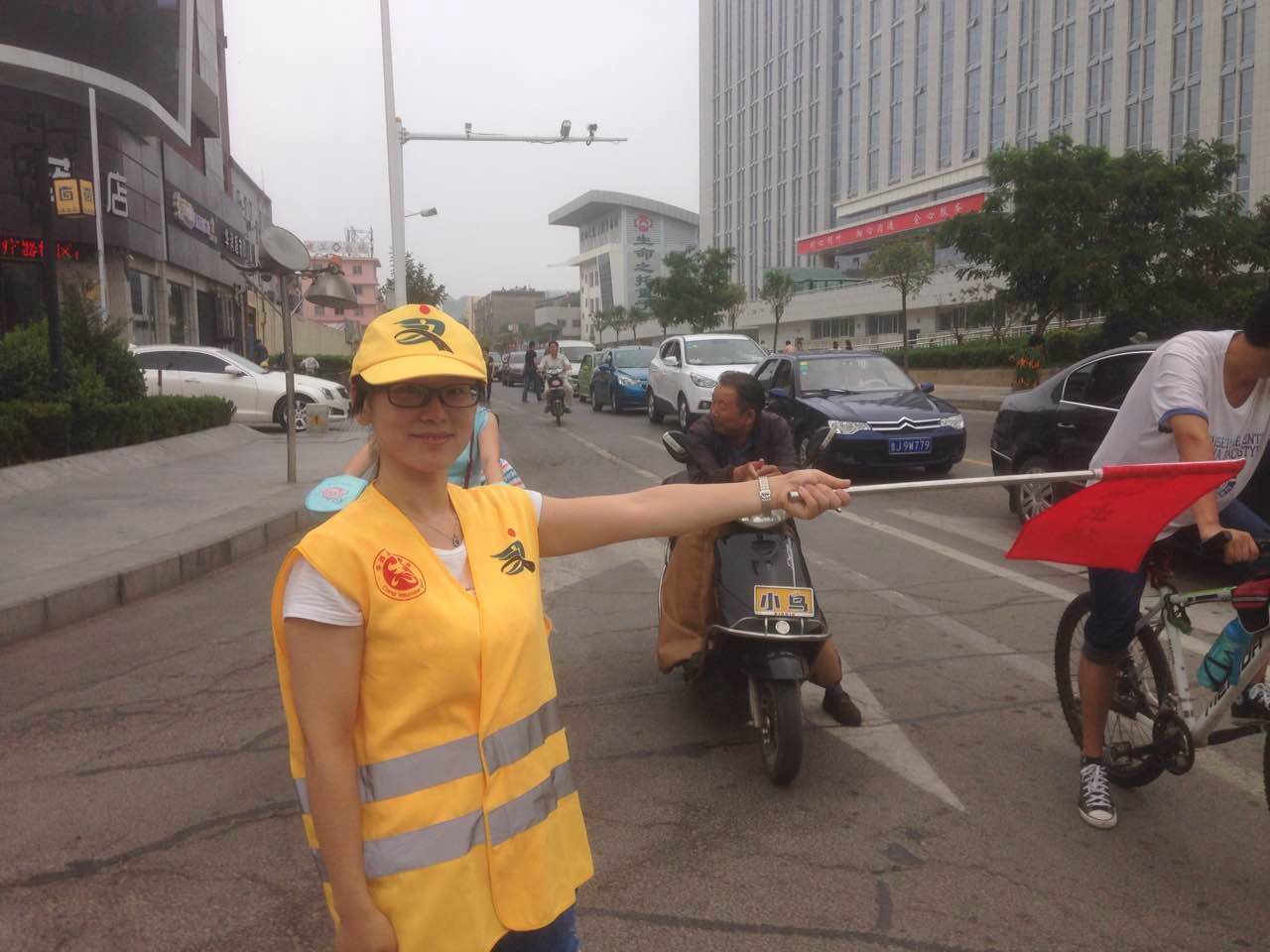 為進(jìn)一步推動全國文明城市創(chuàng)建工作,充分發(fā)揮文明單位的示范引領(lǐng)作用,我校按照市文明委、市創(chuàng)城工作領(lǐng)導(dǎo)小組相關(guān)要求,開展了文明交通志愿服務(wù)活動。 今天,是我校文明交通志愿者執(zhí)勤的第一天,有8名文明交通志愿者分別于7:20-9:00、17:00-18:30分兩組在東岳大街與奈河?xùn)|路路口執(zhí)勤。今天上午7:10,第一組4名交通志愿者身著統(tǒng)一的黃馬甲,頭戴黃色太陽帽,手持交通指揮旗,開始上街引導(dǎo)交通。在接近兩個小時的執(zhí)勤過程中,4名教師中間未曾休息,冒著高溫酷暑一直堅守崗位,盡職盡責(zé),主動引導(dǎo)市民過馬路走斑馬線,不闖紅燈,配合交警維護(hù)路口交通秩序,教育行人遵守交通規(guī)則。活動過程中,共勸阻闖紅燈、越線等不文明交通行為60余起,積極向市民宣傳交通法規(guī)80余次。 早在7月11日-15日,我校在市中心醫(yī)院東南路口開展了為期5天的文明交通志愿服務(wù)活動,28名教師參與。本月文明交通志愿活動,我校共有68名教師志愿者參與。