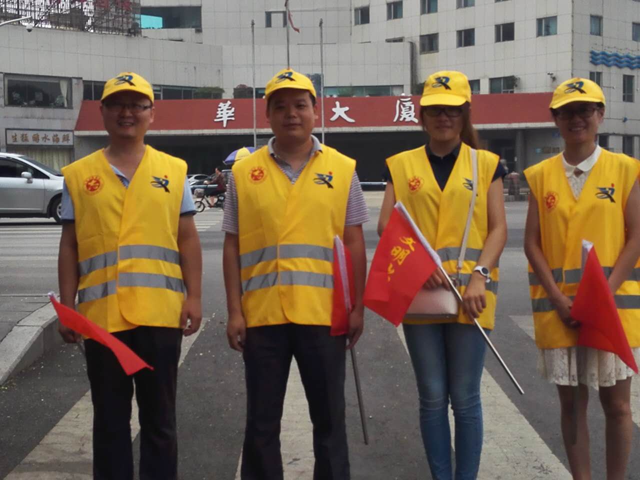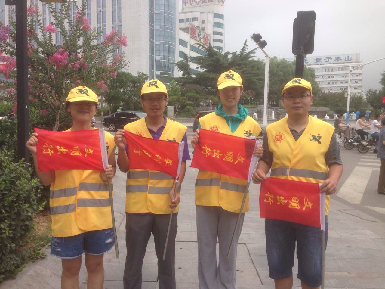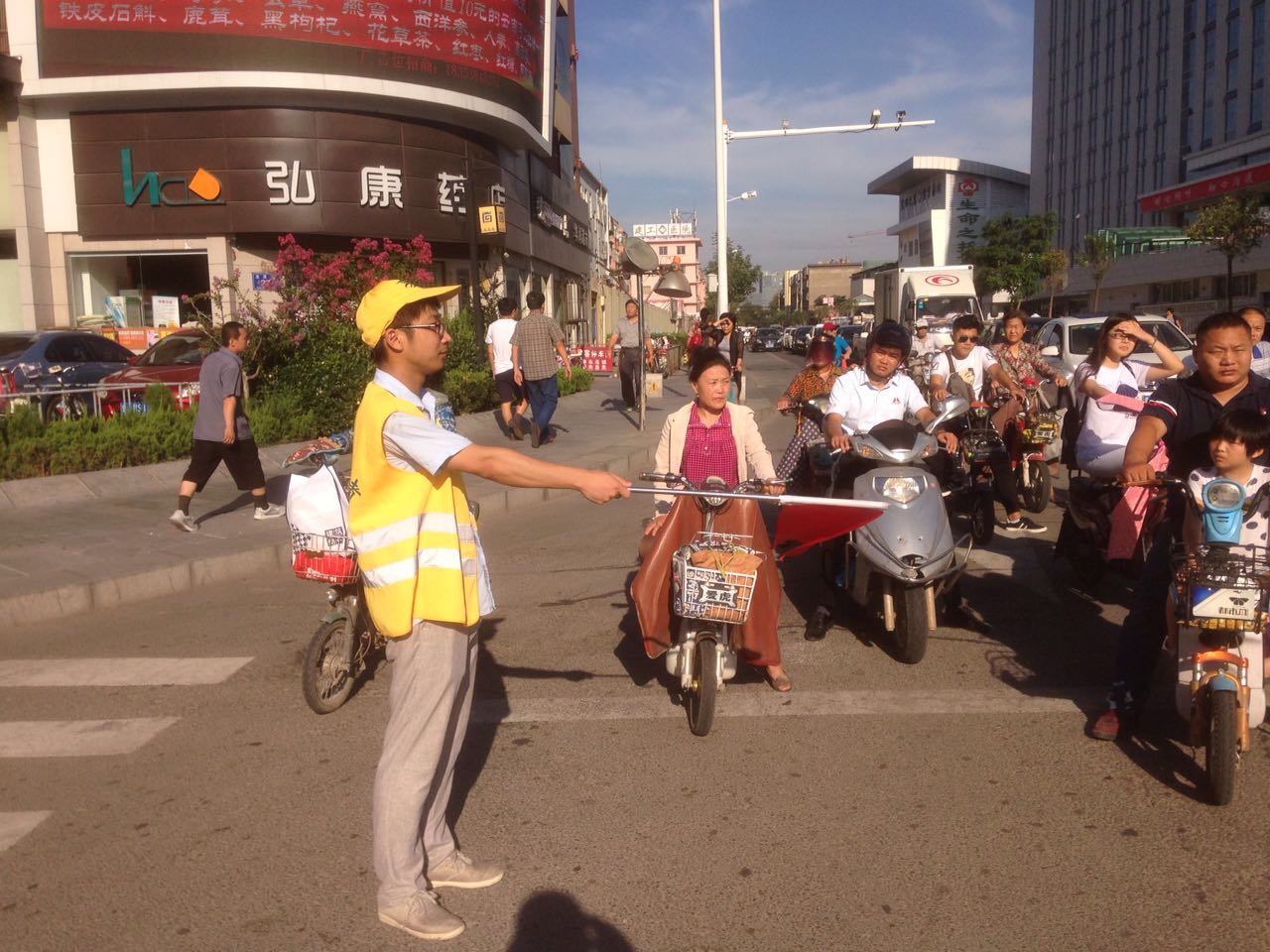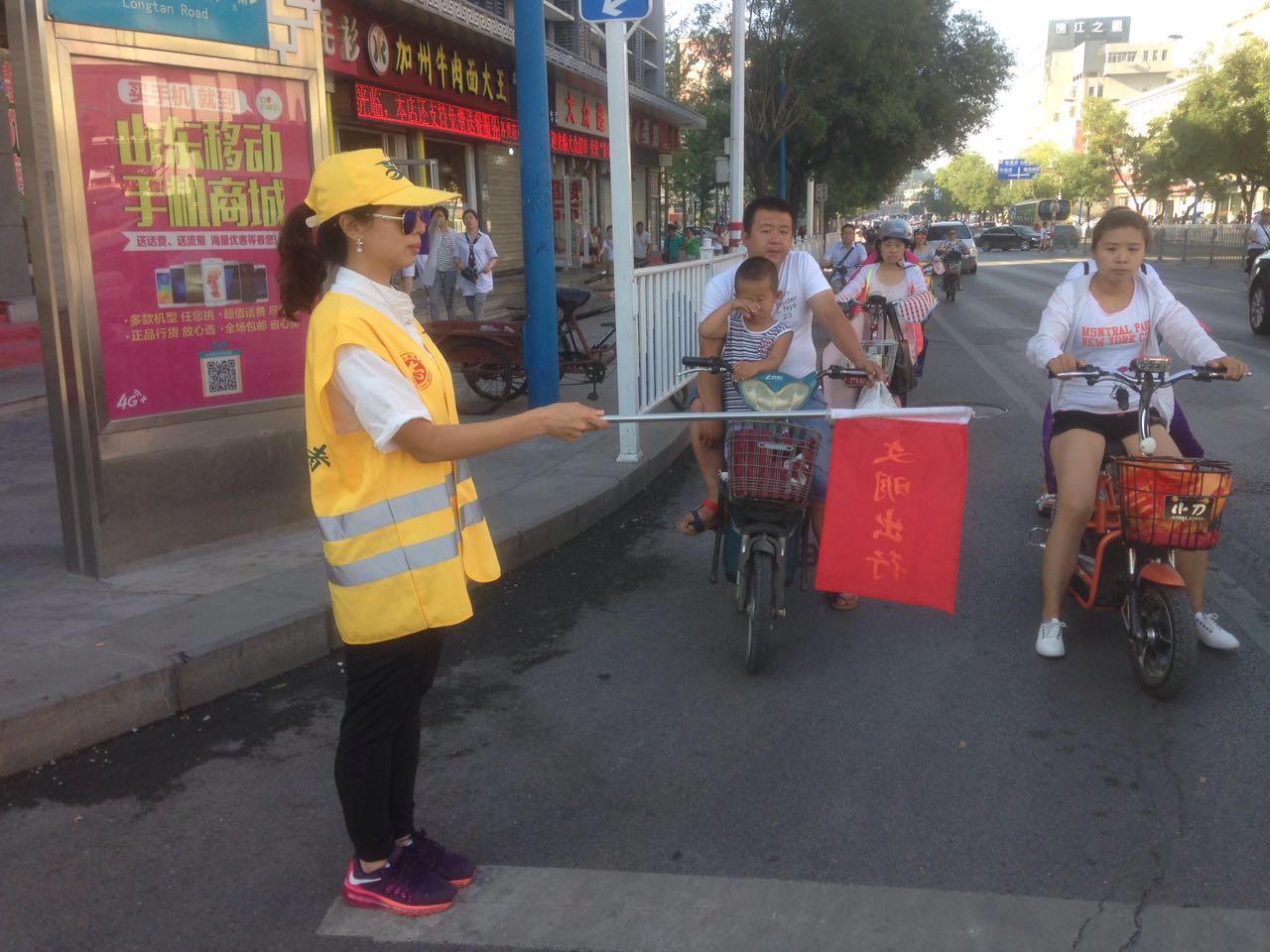 為進(jìn)一步推動全國文明城市創(chuàng)建工作,充分發(fā)揮文明單位的示范引領(lǐng)作用,我校按照市文明委、市創(chuàng)城工作領(lǐng)導(dǎo)小組相關(guān)要求,開展了文明交通志愿服務(wù)活動。 今天,是我校文明交通志愿者執(zhí)勤的第一天,有8名文明交通志愿者分別于7:20-9:00、17:00-18:30分兩組在東岳大街與奈河?xùn)|路路口執(zhí)勤。今天上午7:10,第一組4名交通志愿者身著統(tǒng)一的黃馬甲,頭戴黃色太陽帽,手持交通指揮旗,開始上街引導(dǎo)交通。在接近兩個小時的執(zhí)勤過程中,4名教師中間未曾休息,冒著高溫酷暑一直堅守崗位,盡職盡責(zé),主動引導(dǎo)市民過馬路走斑馬線,不闖紅燈,配合交警維護(hù)路口交通秩序,教育行人遵守交通規(guī)則。活動過程中,共勸阻闖紅燈、越線等不文明交通行為60余起,積極向市民宣傳交通法規(guī)80余次。 早在7月11日-15日,我校在市中心醫(yī)院東南路口開展了為期5天的文明交通志愿服務(wù)活動,28名教師參與。本月文明交通志愿活動,我校共有68名教師志愿者參與。