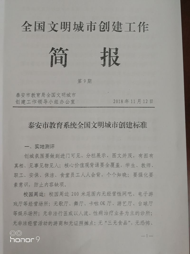 泰安市教育系統(tǒng)全國文明城市創(chuàng)建標(biāo)準(zhǔn)